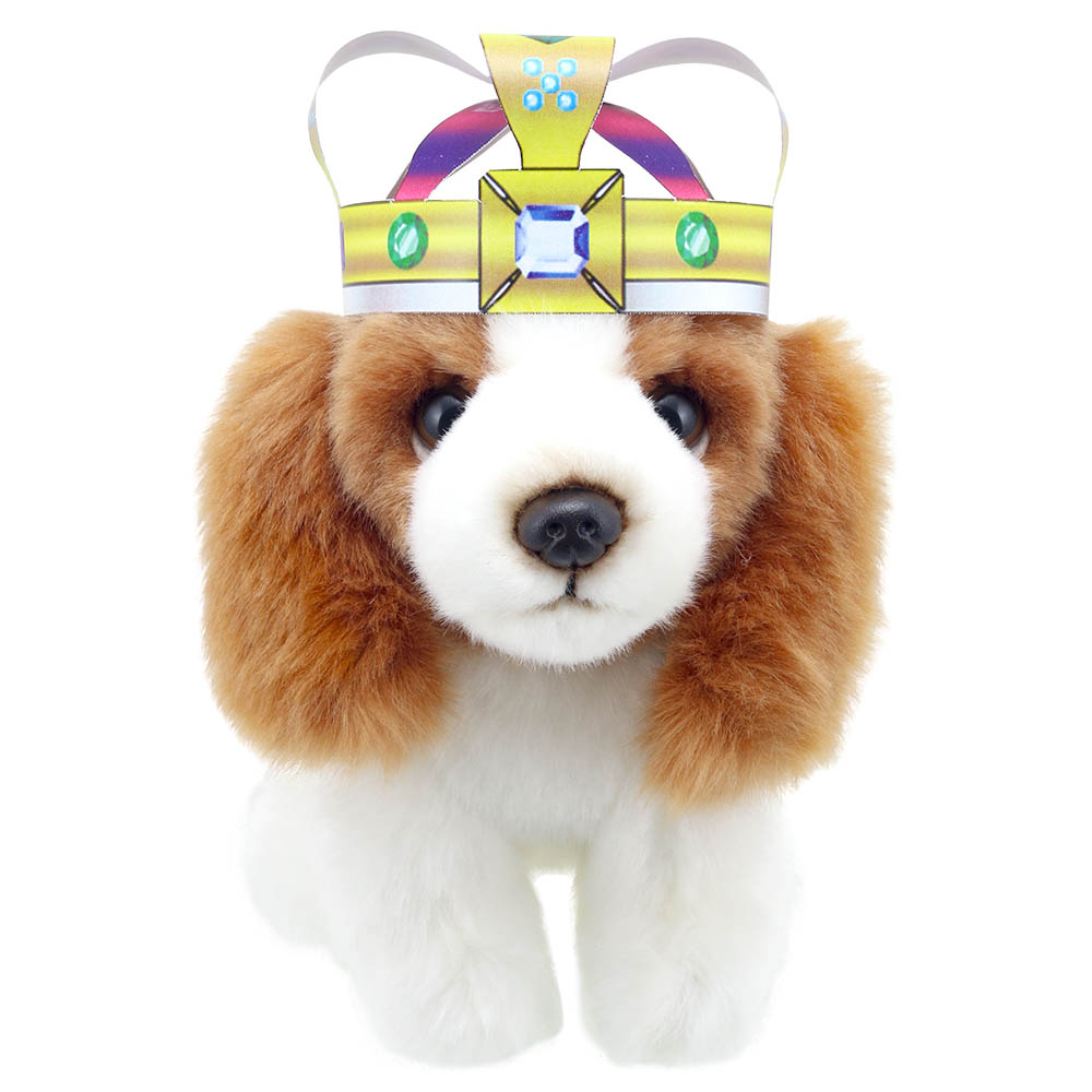 To Celebrate the King's upcoming Coronation, we have designed a beautiful crown for you to print and cut out at home to add a little Royal flair to your King Charles Spaniel Soft Toys (or any soft toy for that matter!)